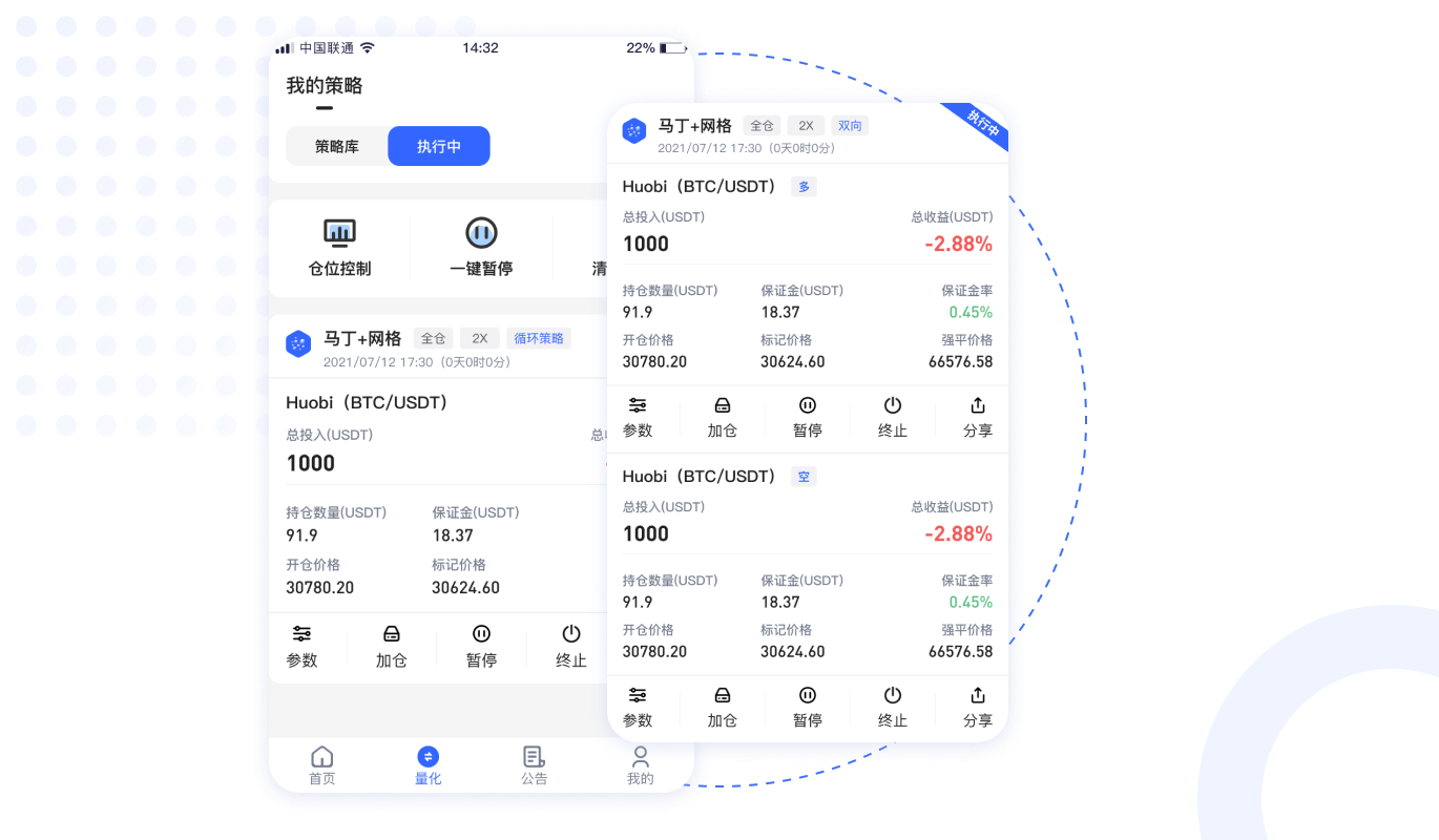 量化交易機解決方案:系統中設定交易策略,讓系統機器人自動執行交易的一種方式,通過檢測行情走勢各種指標,判斷買入、賣出時機,讓用戶盈利最大化。